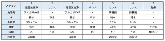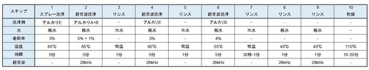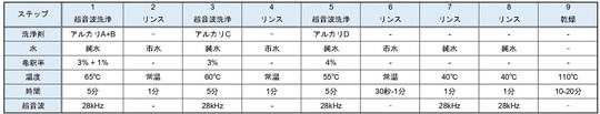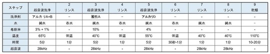 洗浄プロセス(洗浄条件)は基材の材質や汚れの種類・汚れの度合いなど個別の状況に応じて最適化することが重要です。